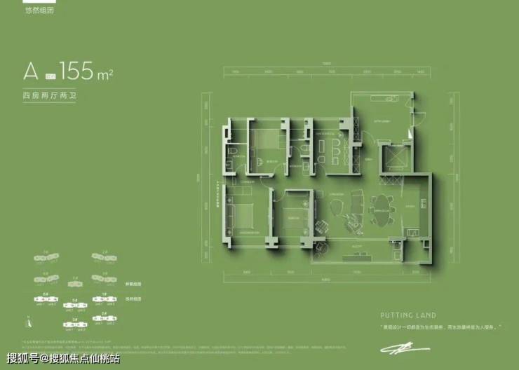 建面155 ㎡:面宽 12.8 m,进深 11.2 m,层高 3.1 m,总价约399–421万元/套