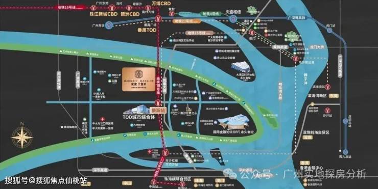 3、交通与配套完善,地铁:紧邻18号线横沥站(约80米),4站直达珠江新城;15号线(规划中)提升未来通达性。周边规划48班小学、54班九年一贯制学校(在建),教育资源密集。1公里内中山一院南沙分院(已运营)、中山口腔医院(在建)。规划约32万㎡横沥TOD综合体、18万㎡地下商业空间(建设中)。