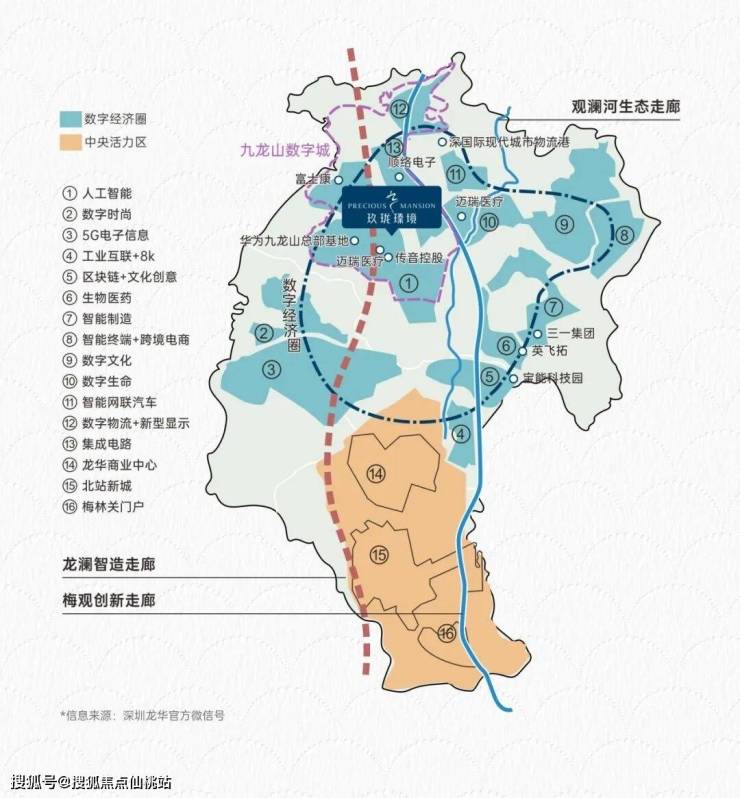“玖珑瑧境”所在的九龙山数字城片区,作为深圳22个重点发展区域之一,位于龙澜智造走廊与梅观创新走廊交汇处,地处粤港澳大湾区港深莞中轴要冲,是深莞协同发展的门户节点。片区聚焦新一代信息技术与高端装备制造,着力构建“产学研”一体化创新生态。