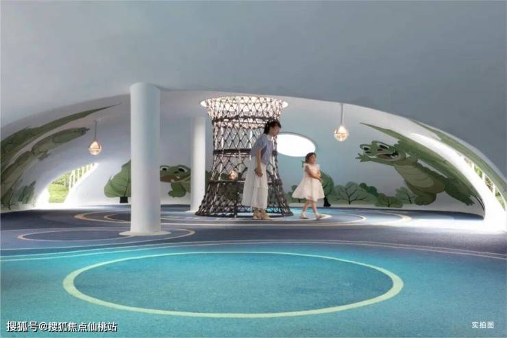 在6#楼,项目用整层架空层空间打造了一座“浮光森林”:治愈系绿调墙面及娱乐设施采用E0级环保涂料,中央空调恒温守护,冬暖夏凉,让孩子在22℃的清风中肆意奔跑。