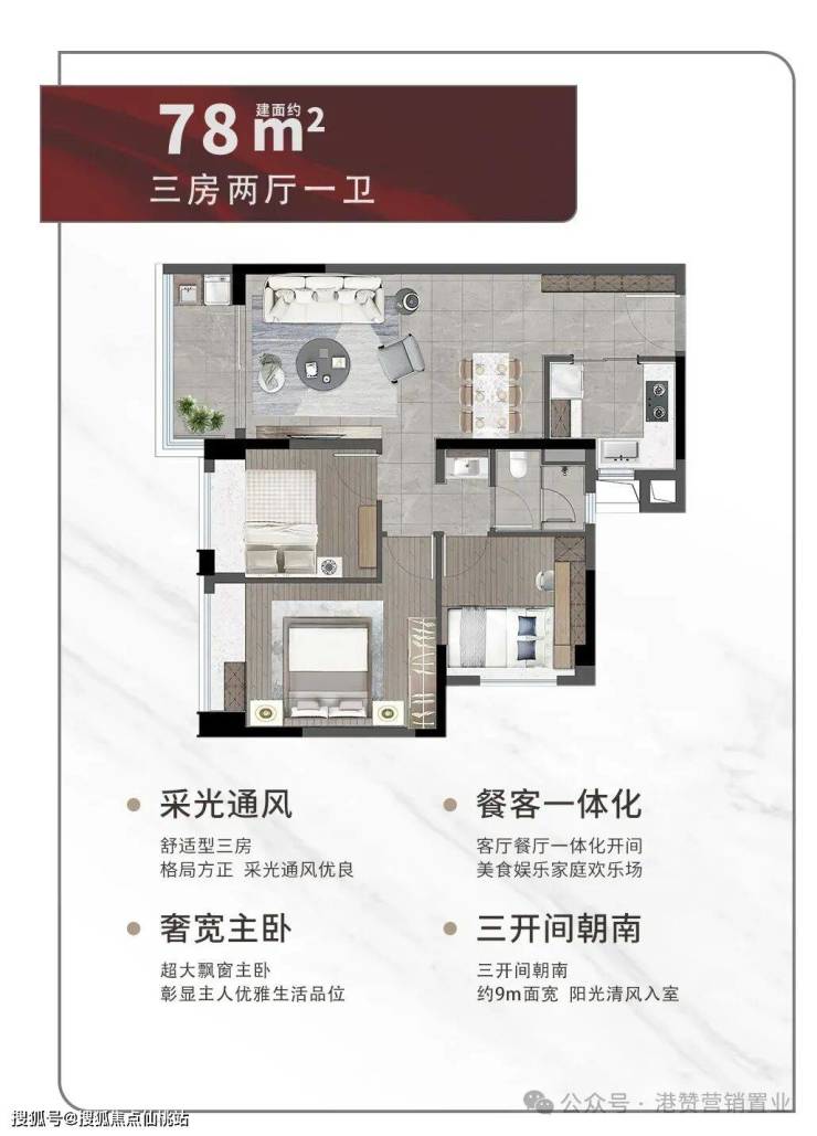 大横厅、瞰景阳台均宽约5.7米-6.2米,搭配约8㎡全景大飘窗,超90%的空间使用率,刷新品质人居定义。