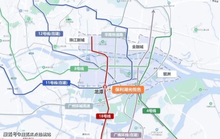 项目距离地铁18号线和在建11号线交汇的龙潭站约600米,从龙潭站出发,到珠江新城、琶洲金融城很近。