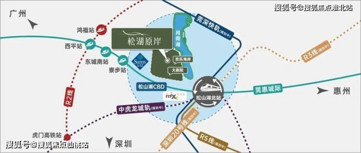 与五轨交汇的超级枢纽-松山湖北站直线距离仅约800m,出门即达城市主干道松山湖大道,四通八达,链接湾区,面向世界。