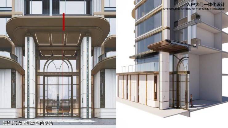 =入口两侧墙面采用贝金米黄奢石,经多种复杂工艺雕琢:拉槽勾勒肌理,波浪切割营造韵律,圆角收边消弭锋芒——繁复只为高定,奢华藏于无声。