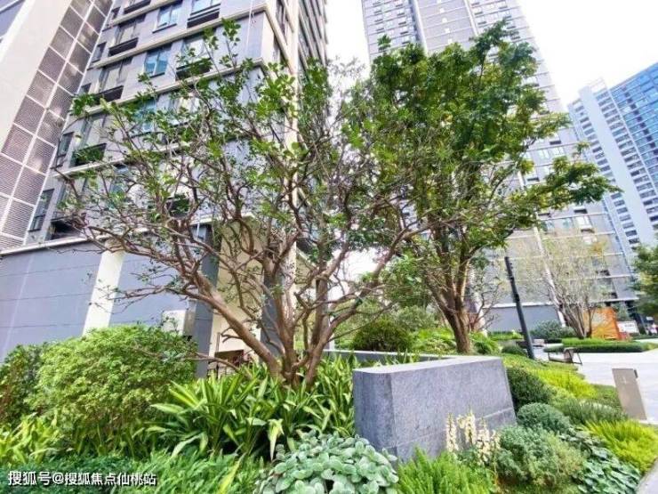 入园处的“读云水院”极具特色,采用幻影蓝高定奢石和透光大理石材打造的下沉式水镜庭院,在绿荫掩映下,将蓝天白云倒映其中,随手一拍都是美景。每栋楼下方,尤其是小高层周边,都设有不同主题的私享院落,闲暇时在此小憩品茶,惬意十足。