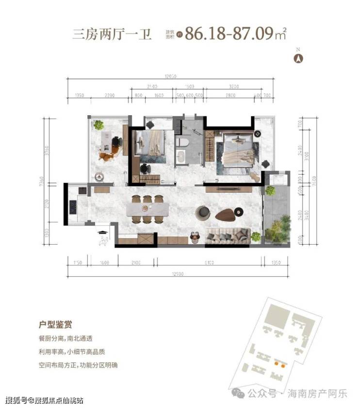三房两厅一卫 建面约86.18-87.09㎡