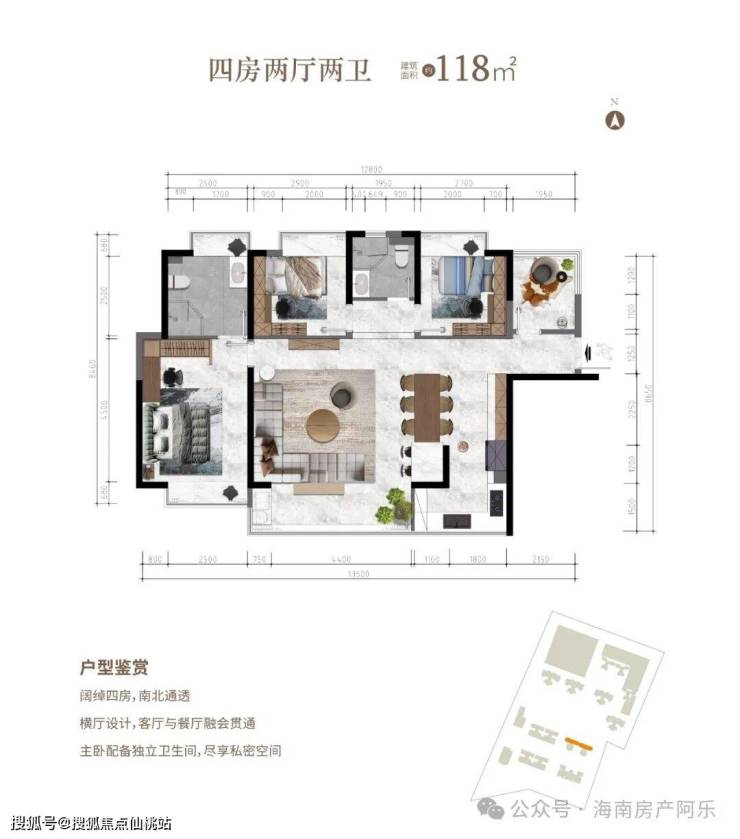四房两厅两卫 建面约118.8㎡