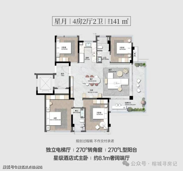 42号地块精装产品:8-31层洋房及高层组成,一楼架空4.5米泛会所,户型由141、165(169)、188、240平四种户型,3#6#8#10#12#号楼141平户型,位于小区东侧,6、12#8层,8、10#10层小洋房。15#号楼165平户型,位于小区南侧,总高15层。11#12#号楼169户型,位于小区西南侧,总高22层。2#5#7#9#号楼188户型,位于小区西北侧,2#31层5、7、9#号楼分别23、24、25层。1#号楼240平户型,楼王位置,位于小区北侧,31层。地块优势:位置不靠主干道,比较安静。1500平下沉式会所,恒温泳池。豪华精装修,省时省力。缺点:高层楼距窄,周围老房子界面一般,出入路较窄,高峰出行相对拥堵。