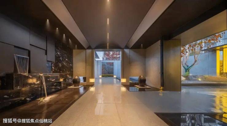 让我特别注意的是形象山门的设计——超40米长、约7米高的大门,造型借鉴古代官帽,顶部“官帽”型发光灯箱暗含“步步高升”的美好寓意。更有镶嵌着定制天青瓷的景墙、酒店式的弧形吊顶、以“滩涂”为灵感的中央水院、临水而设的“天青水阁”下沉式阅读卡座...每一处都能感受到设计者对细节的苛求,而这也都在清晰地传递一个信息:这里的生活,是与风景共生的。