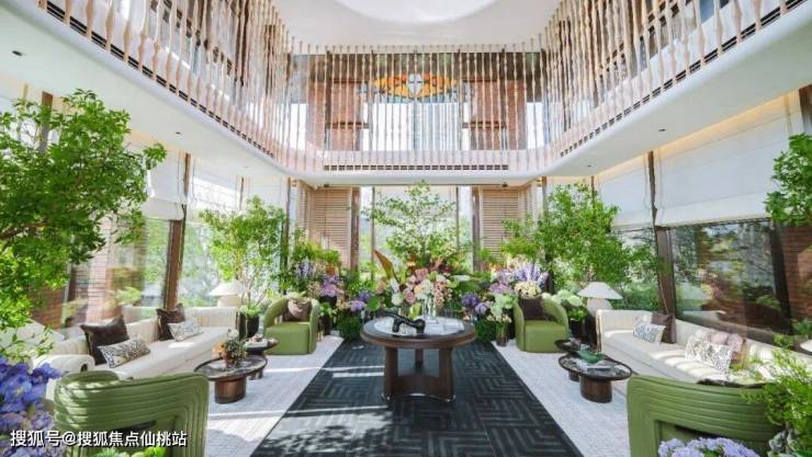 穿过草坪和会客厅,在流光溢彩的玻璃穹顶之下, 依水花厅 静谧与活力和谐交响。