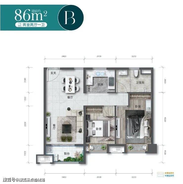 B户型:总价约99-109万元/套