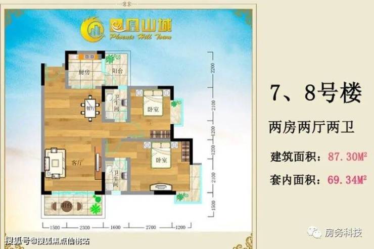 7、8号楼 两房两厅两卫 建筑面积87.30㎡