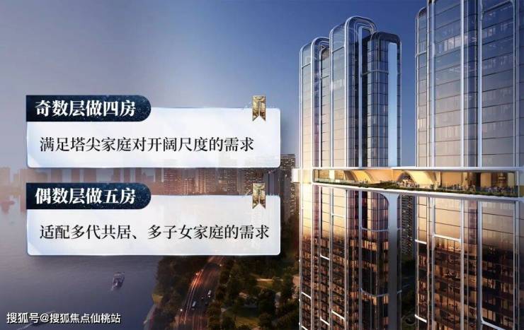 项目基于对佛山塔尖家庭的深度调研,针对不同的家庭需求,做了奇偶数层完全差异化的户型定制: