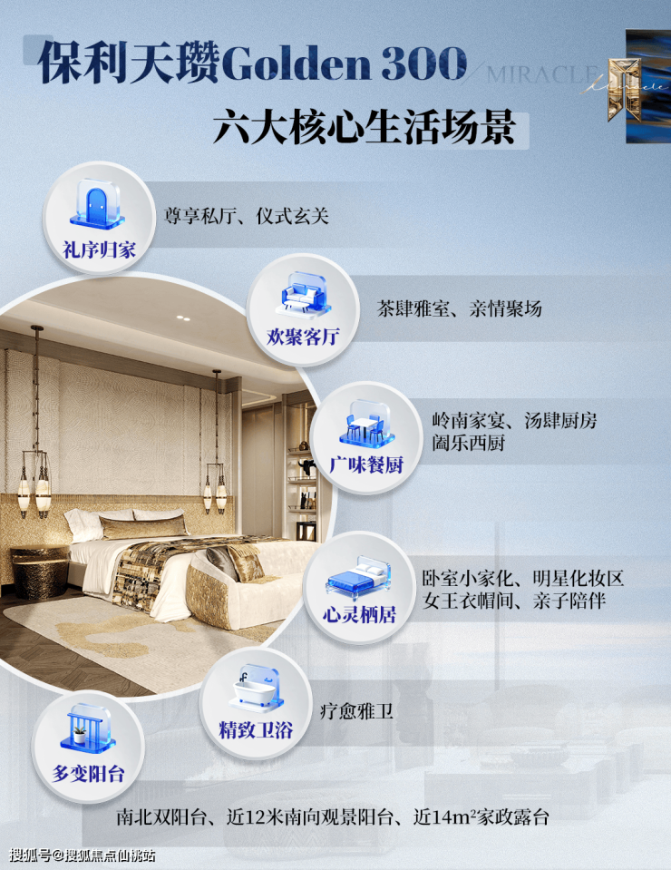 Golden 300基于对佛山塔尖家庭生活习惯的深度调研,把整个户型“重做一遍”,打造了六大核心生活场景,让冰冷的空间,落地为有温度的顶豪生活。