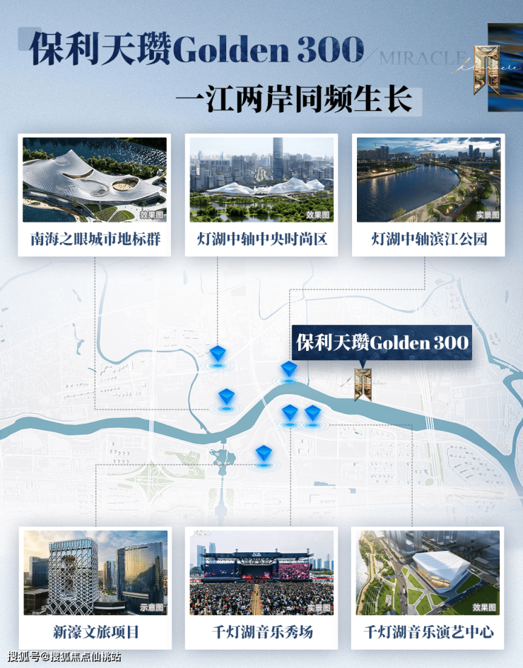 一江之隔,千灯湖音乐演艺中心、新濠文旅项目等重磅城市级配套也在加速兑现,形成了完美的南北呼应,共同构筑起步行即达的高端生活闭环。