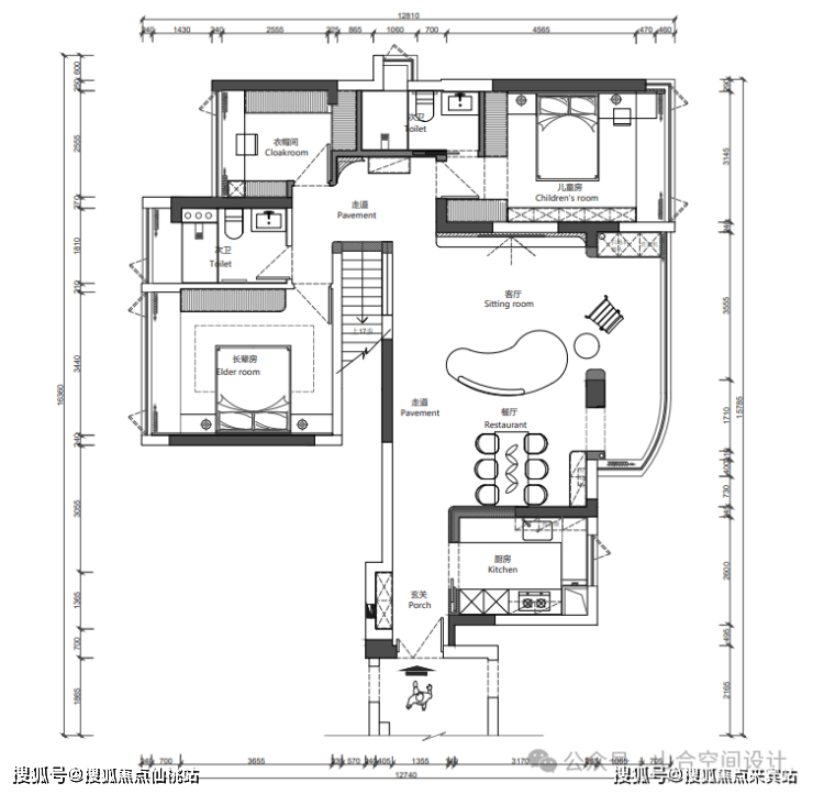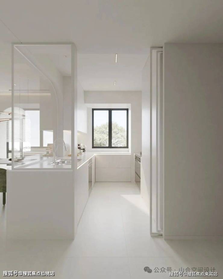 厨房是理性与温柔的共生场域。无把手橱柜的利落线条,与弧形玻璃隔断的柔和曲线对话,在极简基调里勾勒出层次分明的空间韵律。
