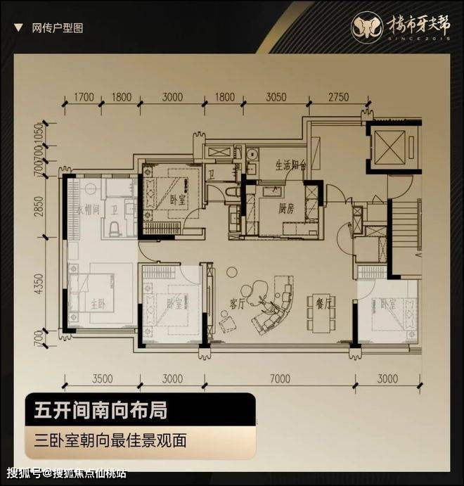 特别是建面约139㎡户型,我愿称之为保利花照天珺建面约143㎡爆款户型的终极升级版,不但保留了超级方厅、双主卧等全系优点,更将唯一的bug暗卫也迭代为明卫。