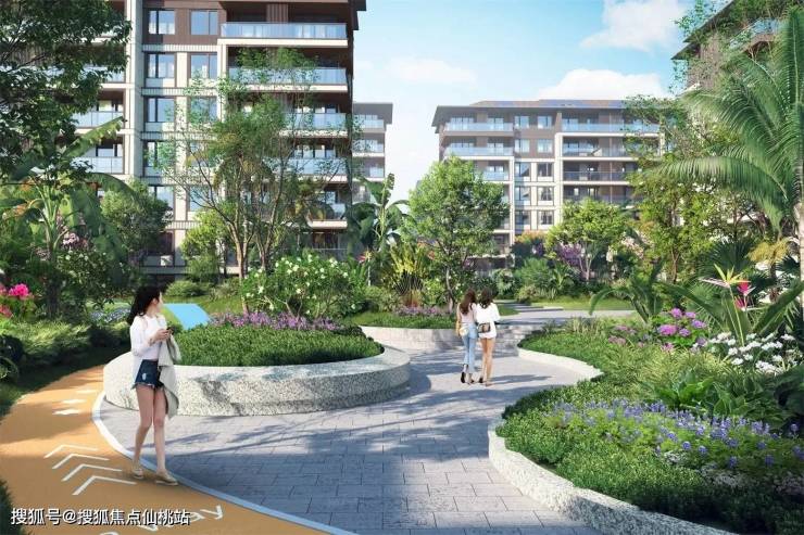 盛海棠以东方美学为魂,度假休闲为肌体在园林设计中融入岛屿、森林、海浪等自然元素规制两轴、三片区、多节点度假式园林