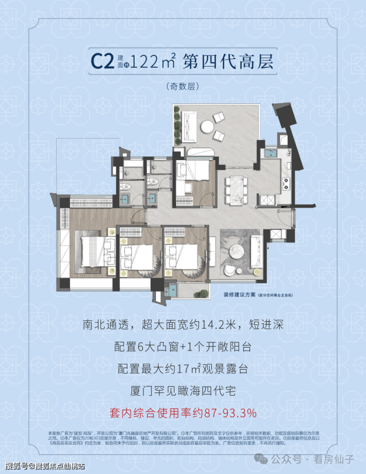 高层122㎡(四代宅):87-93.3%