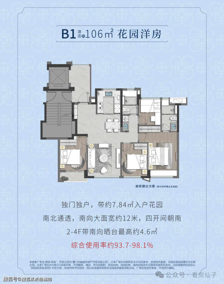 洋房107㎡:93.7-98.1%