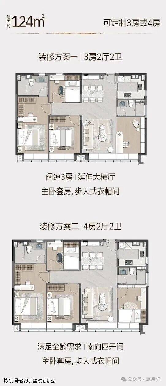 •五缘公馆主打63㎡、120㎡、124㎡户型,120㎡户型每层2套朝向东北,主卧可达30多平,但两间洗手间为暗卫;124㎡户型每层4套朝向西南,支持三房、四房灵活改造,采用大通厅无柱设计;不过户型存在无南北通透、部分房间仅设小通风窗、窗户为不可拆除飘窗等问题,且无燃气供应;