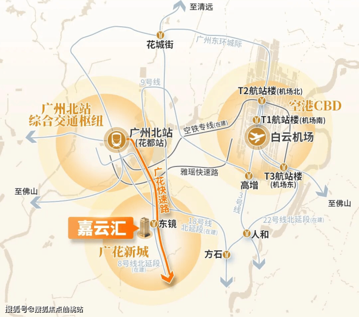 广花路快捷化改造主线通车,大幅拉近花都与中心城区的时空距离。更有白云站、广州北站、白云机场三大枢纽环伺,无论商务差旅或家庭远游,皆能高效衔接,从容启程。