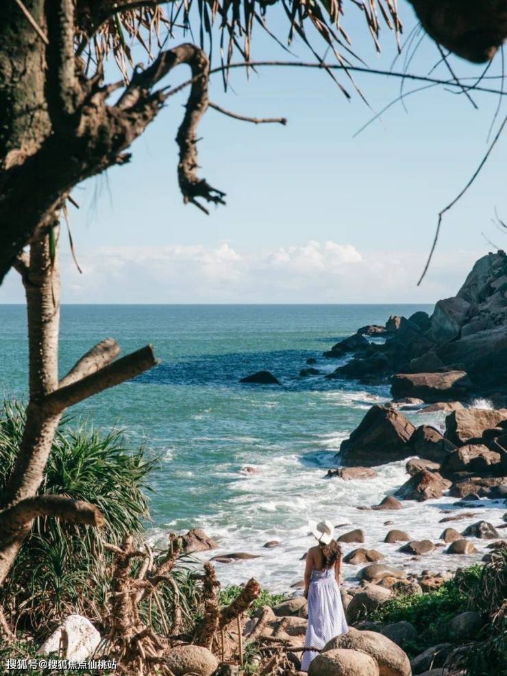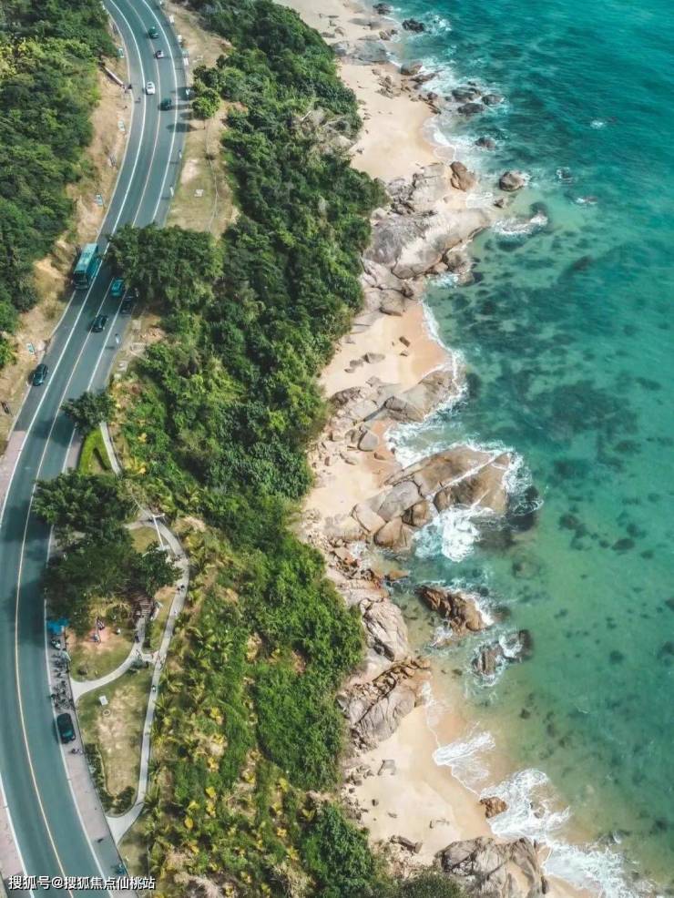 石梅湾有一条绝美的滨海旅游公路。在沧浪亭可以get无人沙滩,礁石嵌落沙滩,海水澎湃沸腾。