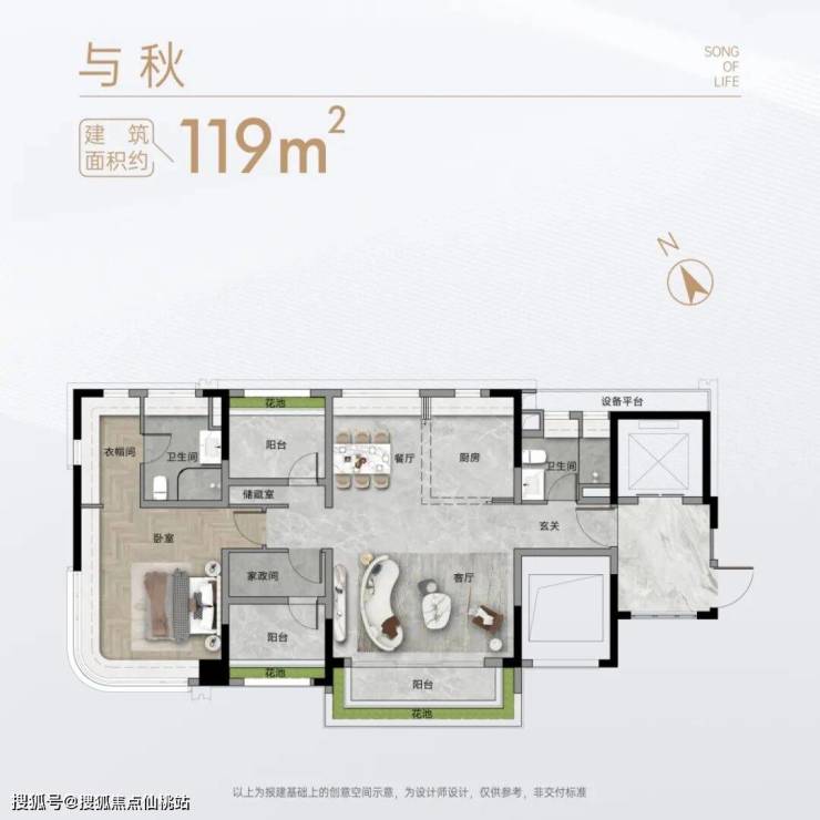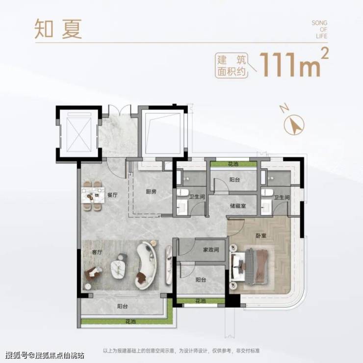 ┄ 约108-120㎡南向低密舒适创意空间 ┄»2T3户设计,城芯难得低密»朗阔起居空间,独立景观视野»同等品质交标,奢适居住体验