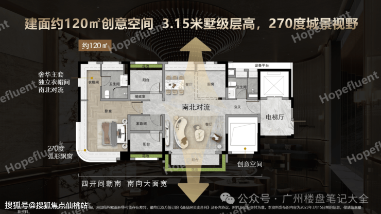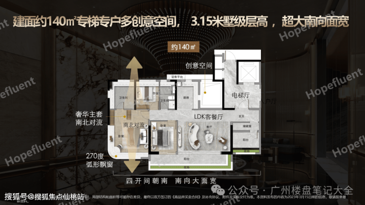 ┄┄约140㎡纯南向专梯专户创意空间┄┄»4开间朝南,南北对流»宽奢体验,全3.15墅级层高»270°(部分)景观,超凡居住体验