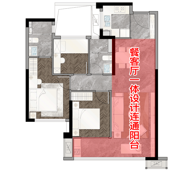 家的宽度,影响着生活的宽度。建发丨缦云建面约94㎡三房两厅两卫,餐客厅一体设计连通阳台,无论是会晤宾客、家庭聚会,或陪孩子嬉戏,都拥有更开阔的空间,满足生活所需。