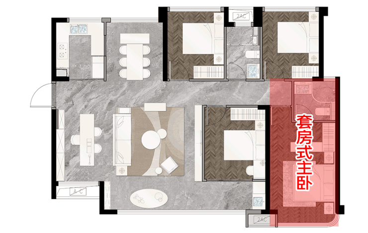 家是生活的载体,更是归心的港湾。建发丨缦云建面约132㎡ 4+1房两厅两卫,配备套房式主卧,集衣帽间、独立卫浴间于一体,功能设置面面俱到,尽显尊贵与奢华。