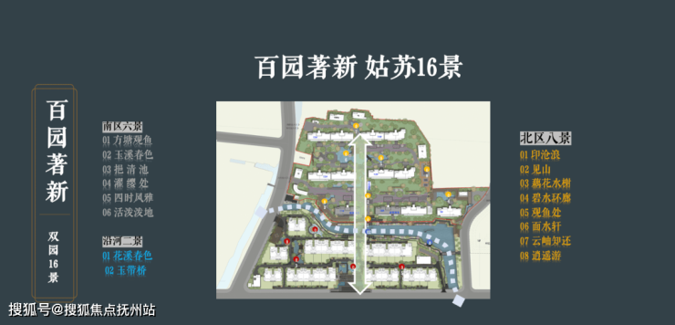 项目取法姑苏百园,打造“一轴一环两园十六景”的园林格局。南区借鉴可园“一泓池水”的精致典雅,打造方塘观鱼、玉溪春色等六景;北区取意沧浪亭的野逸疏朗,形成印沧浪、碧水环廊等八景。
