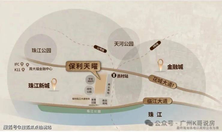 保利天曜位于员村二横路,大板块上属于金融城西区,金融城是广州黄金三角之一,楼盘在地段上是非常优质的。