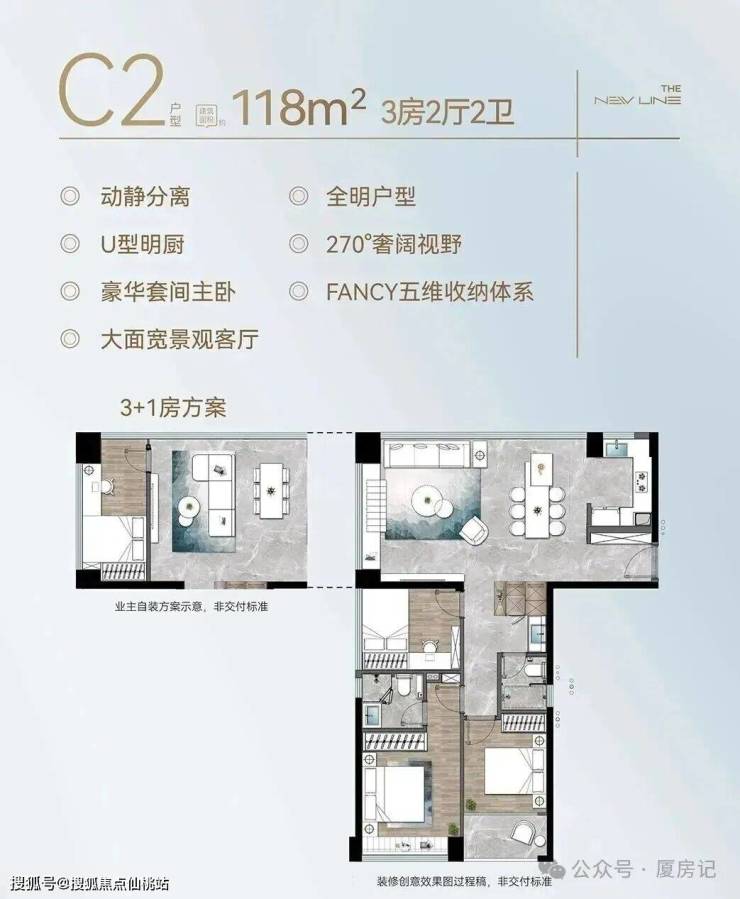 •主打78㎡-89㎡-118㎡-133㎡-170㎡改善型户型,涵盖三至四房;部分户型可同时俯瞰海沧湖与马銮湾海景,综合使用率约80%-85%;