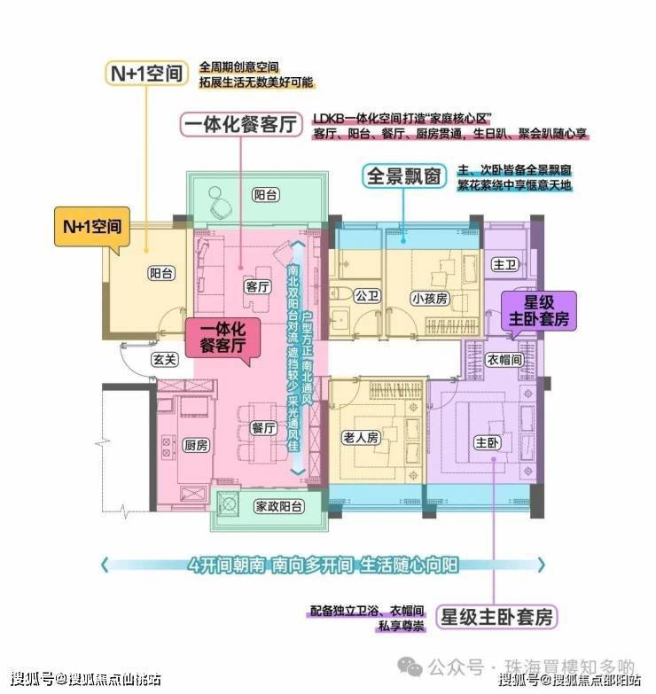 独立玄关+LDKB多空间联动+四开间朝南+N+1创意空间+全屋飘窗赠送+尊崇主卧套间