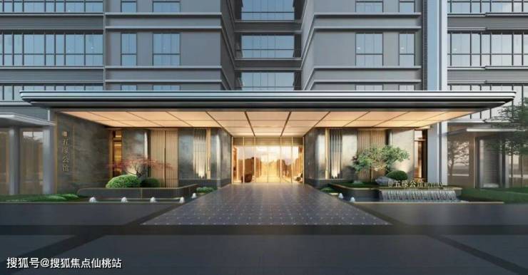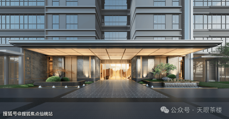 入户大堂是建发目前最高水准,铝板门檐与透光穹顶+观雲同款立面奢石+两侧水系诗意造景+专属标识的归家地面石材铺陈+高级金的色调质感...充满了酒店式高级感。