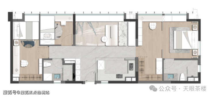 另一种是约120平北侧双套卧户型,约30平的主卧大套房+约17平的次套卧,堪比市面约250平+大平层才拥有的配置;约16米大面宽+楼间距80多米,巨幕视野;奢阔大主卧,市面180-200平以上才拥有的空间享受,主卧有超5米的飘窗,单独衣帽间+独立工作台+超大卫浴间。