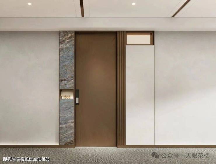 每一户的大门,都采用奢石妆点,对比传统新盘钢制木门,更显高级感,这都是真金白银的投入。