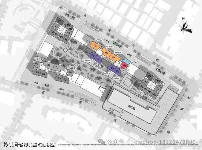 2栋B座一单元02、03户型、2栋B座二单元02、03户型:面积约为88㎡的3房2厅1卫;