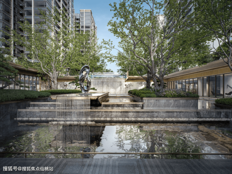 三进园林:以中国传统三进院落的空间序列为蓝本,以"邕州八景"为灵感,借北宋郭熙"三远法"构架两轴三心双芯多节点串联多园景致,一进礼、二进雅、三进居,规划悬挑泳池凌空映景,静观与游憩皆宜,打造"登台三境,移步易景"的立体山水画卷。