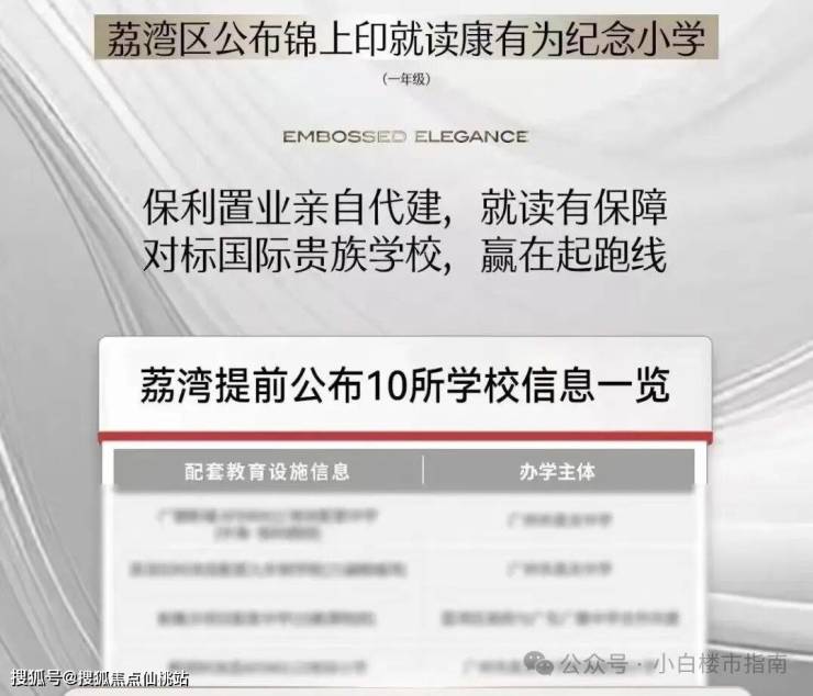 项目配建一所36班的公立小学,已经确定引入康有为纪念学校管理,目前小学已经封顶,预计明年9月开学,项目旁的东漖中学也升级为真光中学东漖学校,由真光中学统一管理,省一级公立芳村儿童福利会幼儿园也在旁。