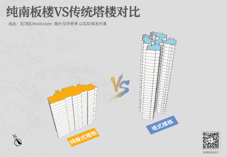 就算是塔板混合的项目,也往往把有限的板楼留给“尖货”,例如集中在200平方米以上大户型,或者头排楼王单元。