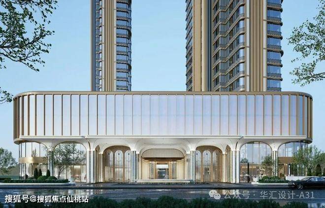 社区主入口直面城市主路,十二根茉莉主题立柱托举8.1米高入口门庭,打造兼具仪式感与东方雅意的归家序厅。立柱取意福州市花茉莉,柱身以整块贝金米黄奢石精工雕琢曲面造型,柱头呈花瓣柔美之态向上延展承托飞檐;顶部采用UHPC工艺复刻福州古厝飞檐,轻盈如翼、肌理如石,既留住传统建筑的风骨神韵,又融入当代工艺的精湛造诣,让在地文化与建筑礼序相融共生,成就一方有温度、有底蕴的归家盛境。