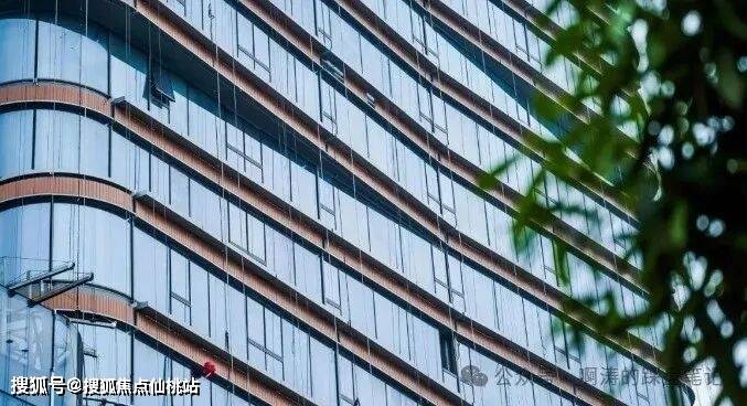 外立面采用木色陶板与全景玻璃幕墙,以“曲水流觞”的涟漪造型呼应珠江文脉,同时融入垂直生态理念,打造空中绿岛与可呼吸的建筑肌理。