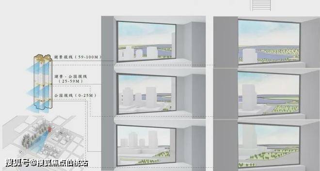 为了满足采光、通风和湖居视野的平衡,项目楼栋整体采用北高南低分布,并将楼栋偏转了38°,协调阳光与湖景的比例。