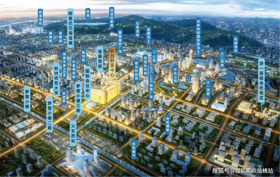 中国(杭州)未来区块链创新中心、紧贴国际会展中心、梦想小镇、海创园、欧洲金融中心、阿里巴巴全球总部、OPPO全球研发中心、VIVO全球总部、恒生科技园
