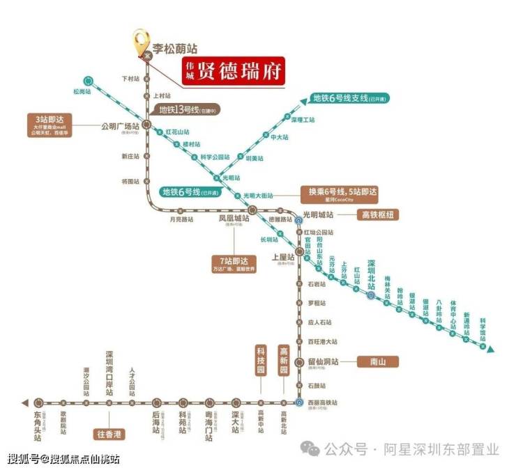起于李松蓢站,终于东角头站。地铁 13 号线被誉为“科创线”,贯穿深圳南北,串联光明科学城、留仙洞总部基地、南山科技园、深圳湾总部基地等重要科创圈。设计最高速度100km/小时,快速通达“南山科技园”。