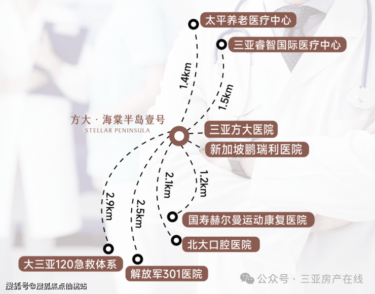 汇聚解放军总医院海南分院、北大口腔医院三亚分院、国寿赫尔曼康复中心、上海嘉麓医院三亚医院(规划中)、方大医院(2026年开工)等顶级医疗力量,串联成全球顶级医疗资源聚合带。