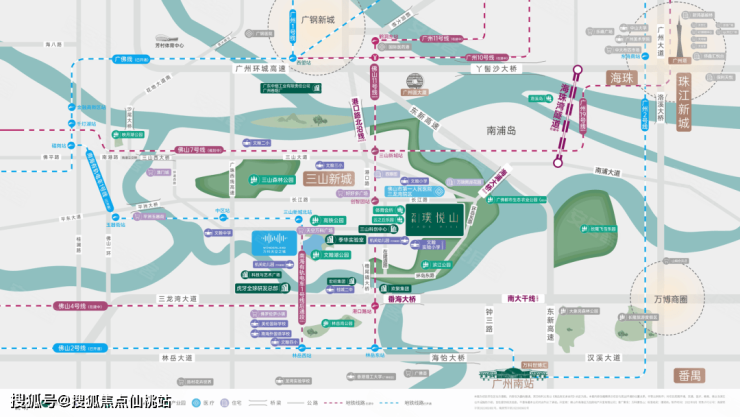 自驾路网:紧邻番海大桥、南大干线两大广佛交通主动脉,5分钟接入广珠西线高速、佛山一环,8分钟直达广州南站,10 分钟通达广州荔湾芳村,20 分钟抵达广州海珠、番禺万博 CBD,30 分钟可达珠江新城,广佛双城自驾通勤效率极高,是典型的临广自驾友好型楼盘。