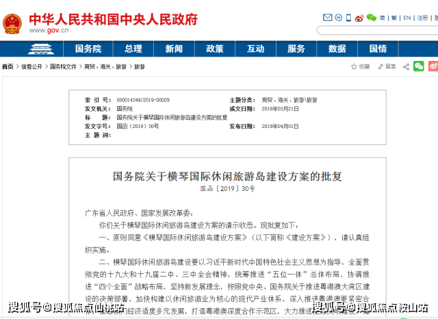 2019年初,国务院公布了关于《横琴国际休闲旅游岛建设方案》的批复,提出“打造粤港澳深度合作示范区,大力推进生态文明建设……逐步将横琴建设成为面向未来、国际品质、生态优先、协同发展、智慧支撑的国际休闲旅游岛”的基本方向。